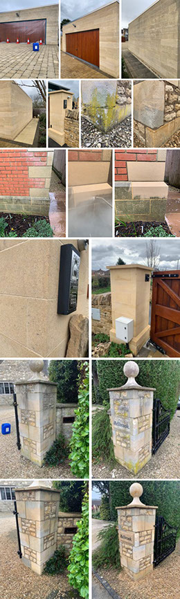 Various Stone cleaning using both chemicals and super heated 150 degree steam, low pressure, but high temperature so no damage to the stone work or mortar. Excellent results as you can see.
